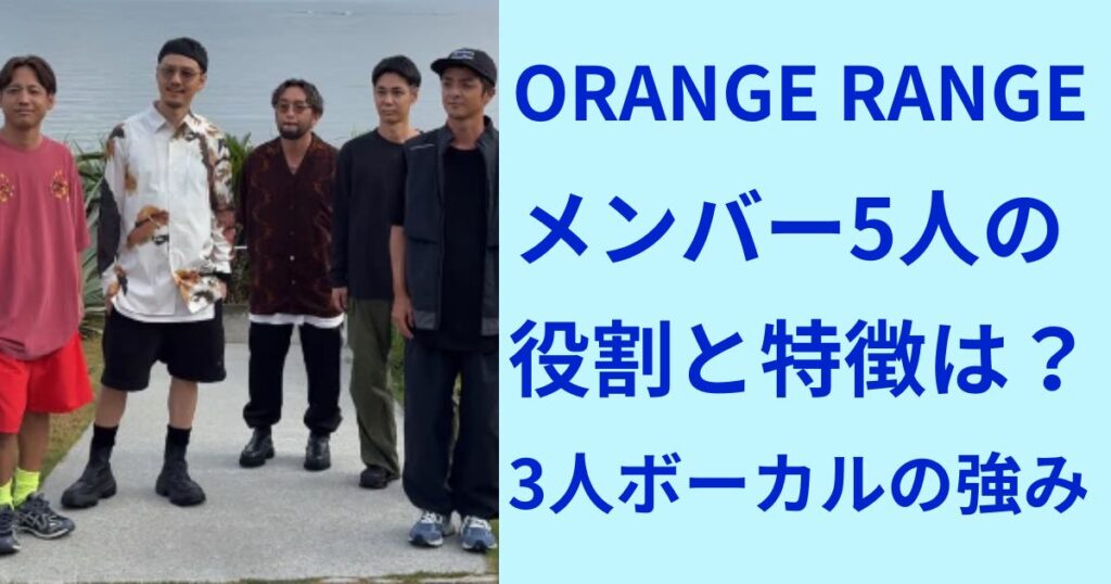 沖縄出身のロックバンドとして2003年にメジャーデビューし、数々のヒット曲を生み出してきたORANGE RANGE。 そんなORANGE RANGEですが、メンバー5人それぞれの役割や特徴、そして3人ボーカル体制の強みはどのようなものなのでしょうか。 今回はORANGE RANG... -