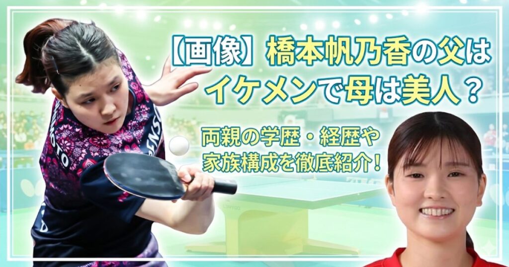 卓球界の期待の星として活躍する橋本帆乃香さん。 そんな橋本帆乃香さんですが、父親はイケメンで母親は美人なのでしょうか? また、両親の学歴や経歴、家族構成についても気になりますよね。 今回は、橋本帆乃香さんの両親や家族について詳しく見ていきま... -