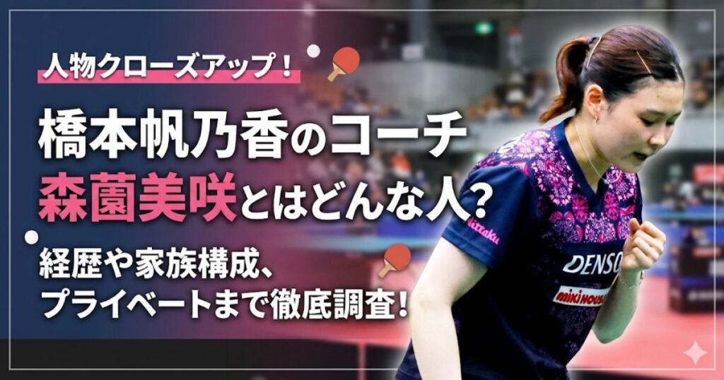 卓球界で輝かしい実績を持つ森薗美咲さん。 そんな森薗さんですが、橋本帆乃香選手のコーチとして注目を集めているようです。 森薗さんはどのような経歴を持ち、どんな家族構成なのでしょうか。 今回は、森薗美咲さんの人物像に迫ってみたいと思います。 ... -