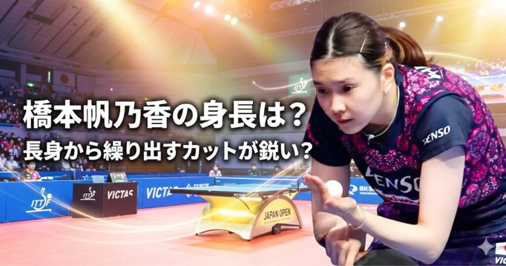 卓球界で注目を集める橋本帆乃香さん。 そんな橋本さんですが、身長や特徴的なプレースタイルが気になりますよね。 橋本さんの身長はどれくらいで、本当に長身を活かしたカットが武器なのでしょうか。 今回は、橋本帆乃香さんの身長と、そのプレースタイル... -