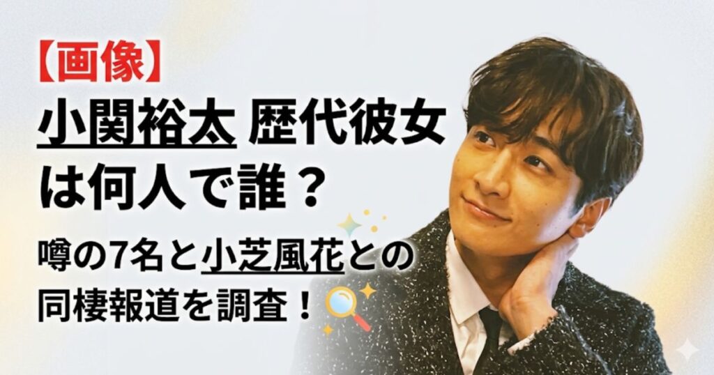 子役時代から活躍し、現在は大河ドラマ『豊臣兄弟!』で織田信忠役を好演している小関裕太さん。 そんな小関裕太さんですが、歴代彼女は何人で誰なのか、また噂の7名と小芝風花さんとの同棲報道について気になる方も多いのではないでしょうか。 小関裕太さ... -