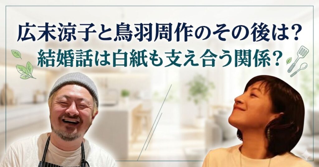 数々の名作に出演し、日本を代表する女優として活躍してきた広末涼子さん。 そんな広末涼子さんですが、鳥羽周作シェフとの関係はその後どうなっているのでしょうか。 2026年4月には芸能活動の再開を発表し、大きな注目を集めています。 そこで今回は、 広... -