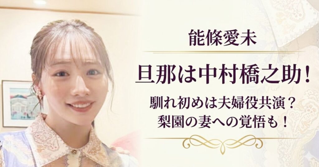 元乃木坂46のメンバーとして活躍し、現在は女優として幅広い舞台で輝いている能條愛未さん。 そんな能條愛未さんですが、歌舞伎俳優の中村橋之助さんとの婚約が発表され、大きな話題となっています。 アイドルから梨園の妻へという大きな転身に、多くのフ... -