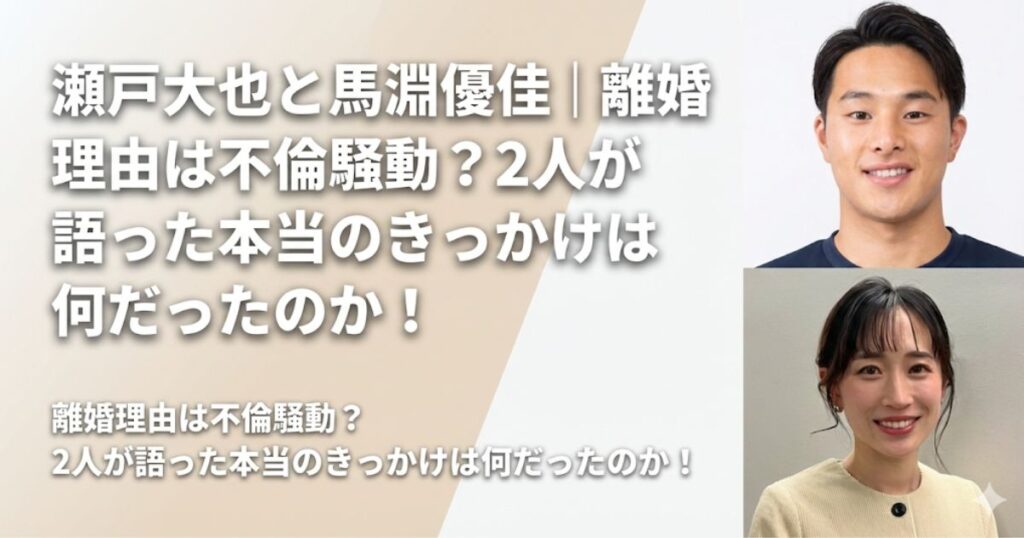 競泳界のトップスイマーとして活躍し、数々のメダルを獲得してきた瀬戸大也さん。 そして元飛込日本代表として活躍し、現在はタレントとしても人気の馬淵優佳さん。 そんなお二人ですが、2026年2月10日に離婚を発表されました。 2017年に結婚し、2人のお子... -