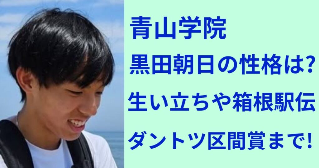 青山学院大学のエースとして箱根駅伝で圧倒的な走りを見せる黒田朝日さん。 そんな黒田朝日さんですが、どのような性格で、どんな生い立ちを経て箱根駅伝区間優勝を果たしたのでしょうか。 2026年の箱根駅伝では「シン・山の神」として歴史的な大逆転劇を... -