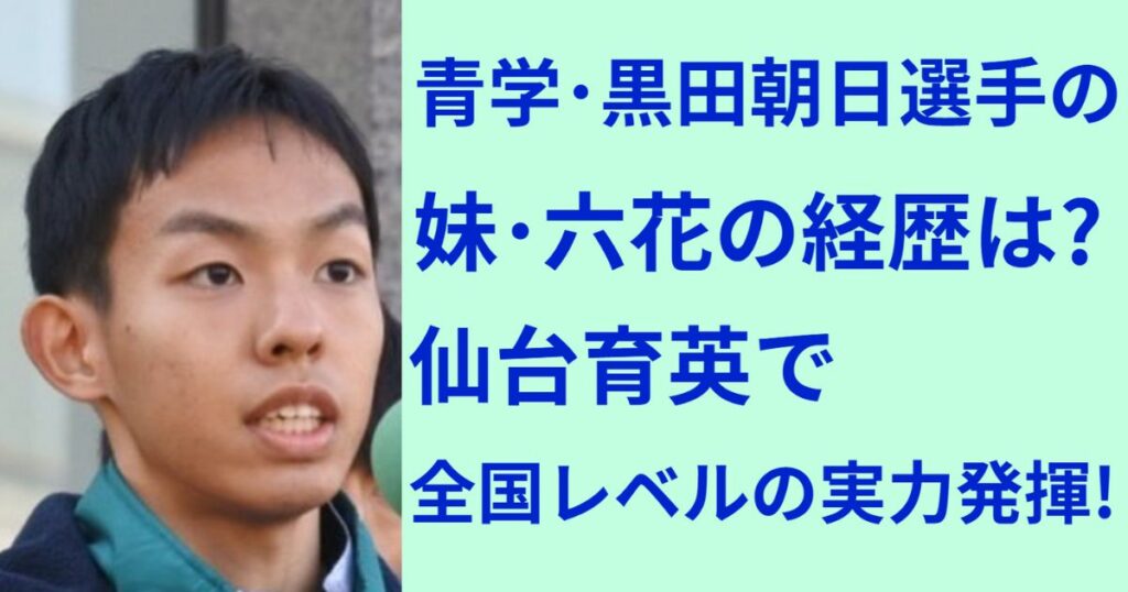箱根駅伝で活躍する青山学院大学のエース・黒田朝日選手。 そんな黒田朝日選手ですが、妹の六花さんも陸上選手として注目を集めているのをご存知でしょうか。 今回は黒田朝日選手の妹・六花さんの経歴や実力について詳しくお伝えします。 青学・黒田朝日選... -