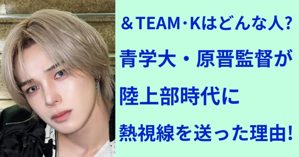 高身長でパフォーマンス力も高い実力派なKさん。 そんなKさんですが、なぜアイドルでありながら陸上界の名将から注目を集めていたのでしょうか。 &TEAMで活躍する現在までの歩みと、原晋監督さんとの意外な接点を整理します。 &TEAM・Kはどんな人? この...