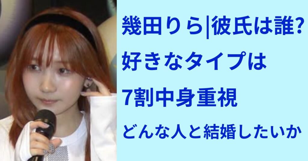 YOASOBIのボーカルとして、またソロアーティストとしても活躍する幾田りらさん。 透明感のある歌声と表現力で多くのファンを魅了している幾田りらさんですが、彼氏はいるのでしょうか。 また、どんなタイプの人を好み、どんな性格で、将来どんな人と結婚し... -