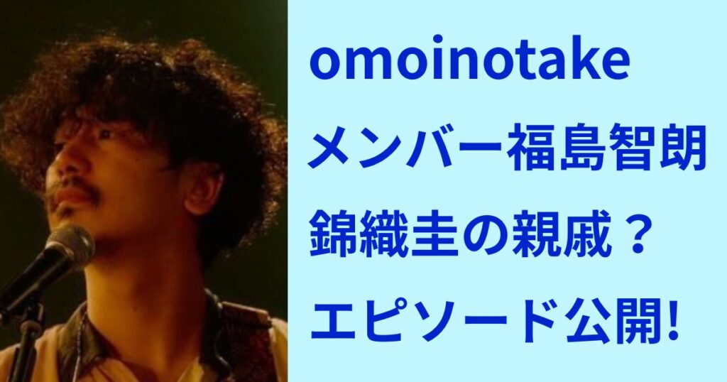 人気バンドOmoinotakeのベーシストとして活躍する福島智朗さん。 そんな福島智朗さんですが、実は世界的に有名なテニスプレイヤーと親戚関係にあることが明らかになりました。 福島智朗さんの経歴や、気になる錦織圭選手とのエピソードについて、詳しく見... -