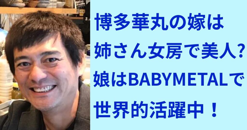 NHK『あさイチ』のMCとして国民的人気を誇る博多華丸さん。 そんな博多華丸さんですが、奥さんは姉さん女房で美人という噂があるのでしょうか。 また、娘さんが世界的メタルダンスユニット「BABYMETAL」のメンバーとして活躍していることも話題になってい... -