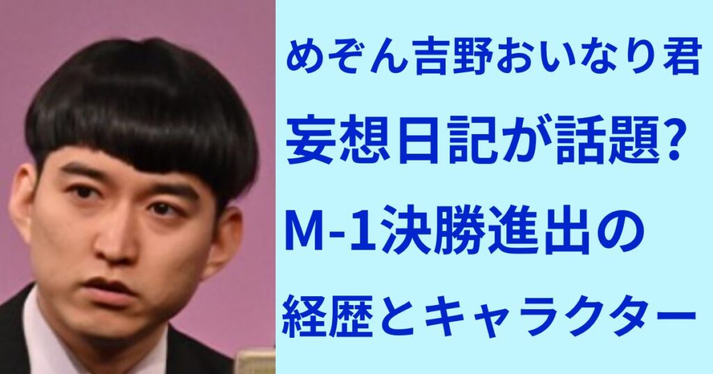 お笑いコンビ「めぞん」のボケ担当として活躍する吉野おいなり君さん。 そんな吉野おいなり君さんですが、M-1グランプリ2025の決勝進出で大きな注目を集めています。 また、独特な世界観の「妄想日記」という企画も話題になっているようですが、一体どんな...
