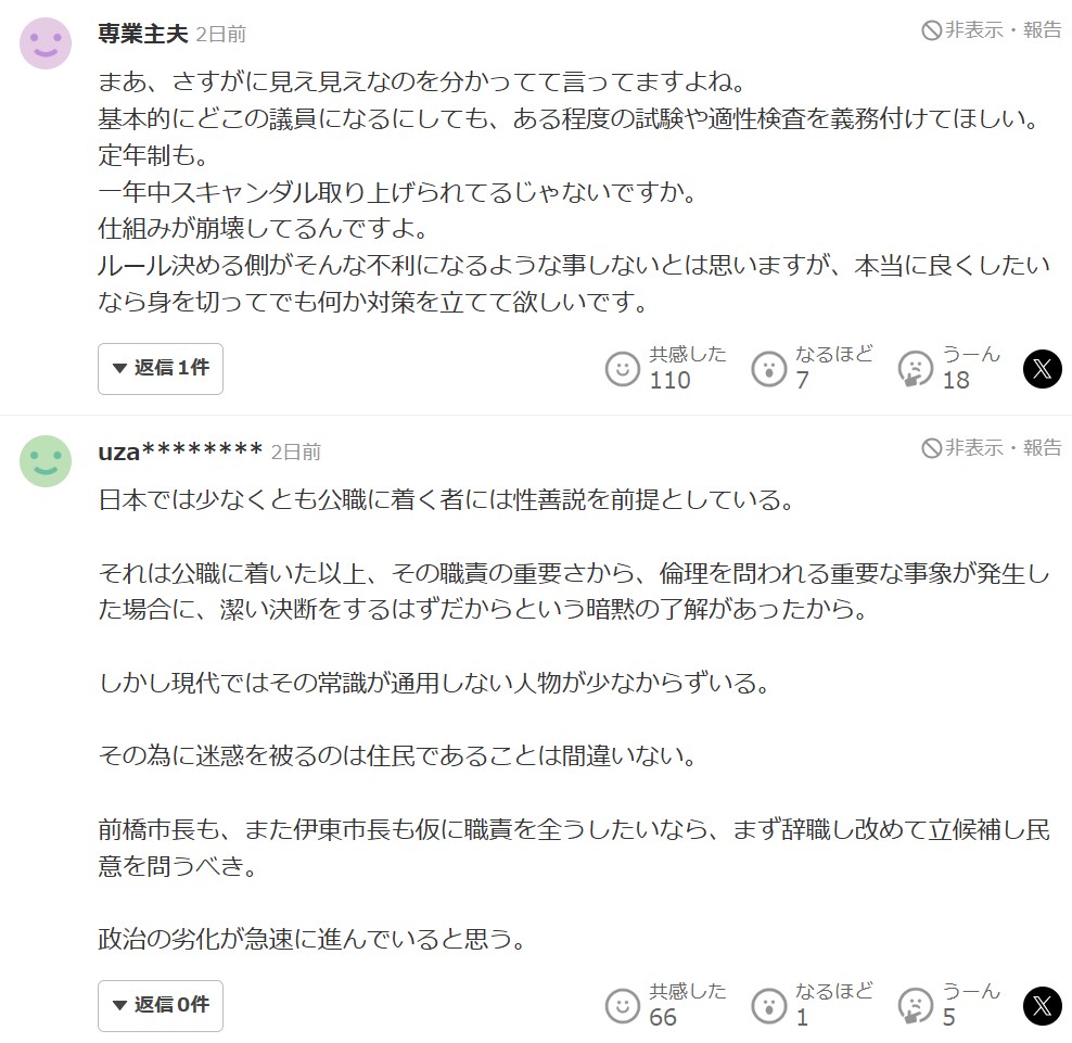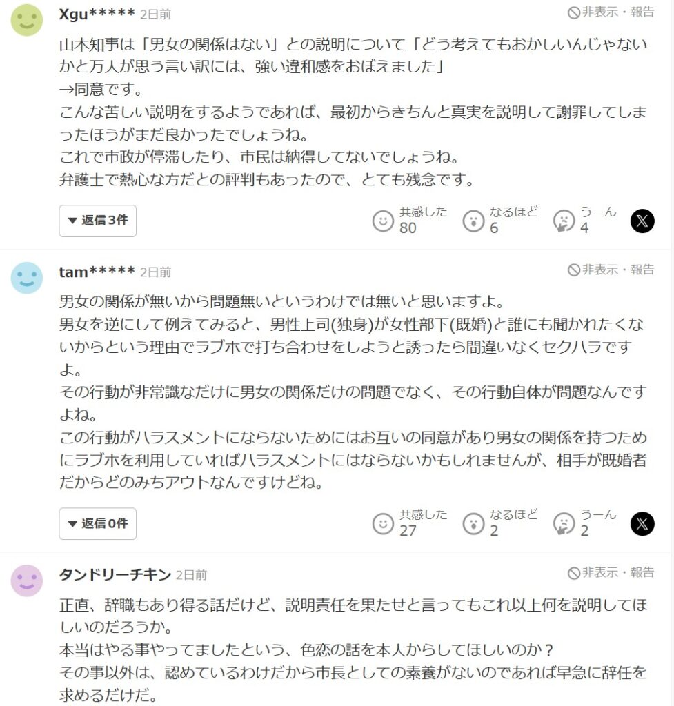 しかし、男女の関係がなかったというという言い訳に無理があるという意見が多数ありました。