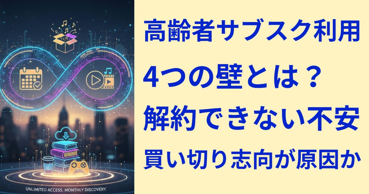 高齢者がサブスクを利用する際の壁は、デジタル操作の複雑さ、支払い方法への抵抗、経済的な不安、サービスの価値認識の違いという4つがありました。