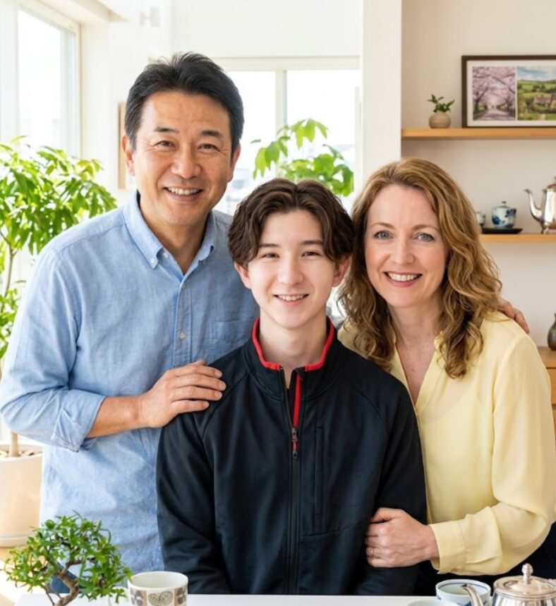 ご両親の国籍は父親が日本、母親がイギリスで、家族構成は父・母・本人の3人家族と見られています。