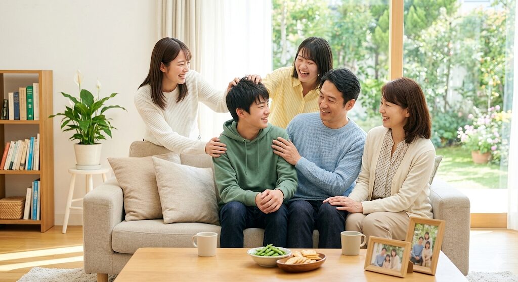 家族との距離が非常に近く、実家との関係も良好なようです。