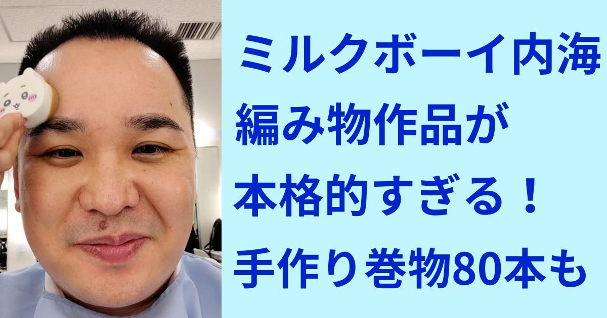 ミルクボーイ内海さんの編み物作品と手作り巻物についてお伝えしました。