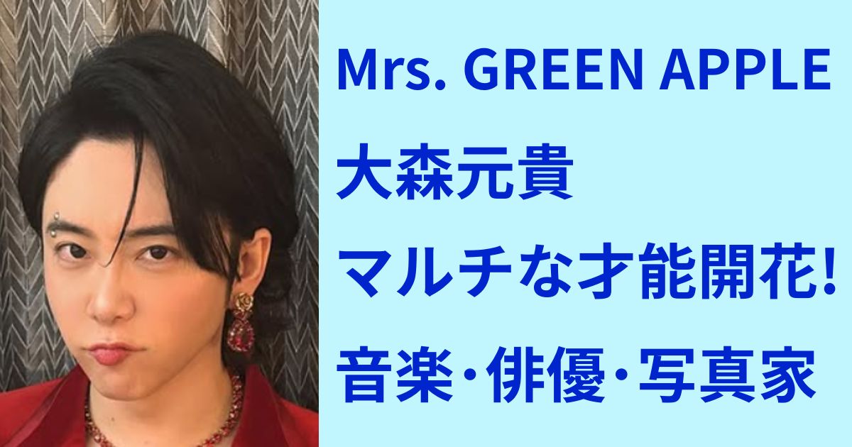 Mrs. GREEN APPLEのボーカルとして知られる大森元貴さんが、音楽だけでなく俳優や写真家としても活動を展開し、マルチな才能を開花させています。