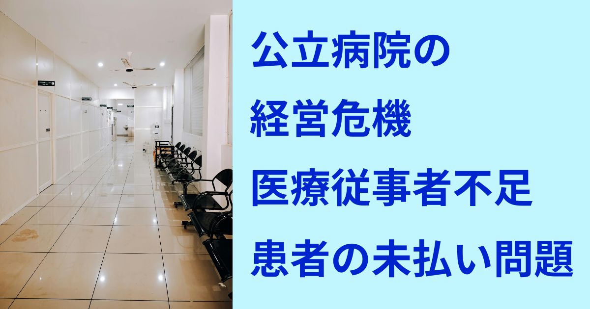 公立病院の経営危機は、医療従事者不足と患者の医療費未払い問題という二つの大きな課題に直面しています。