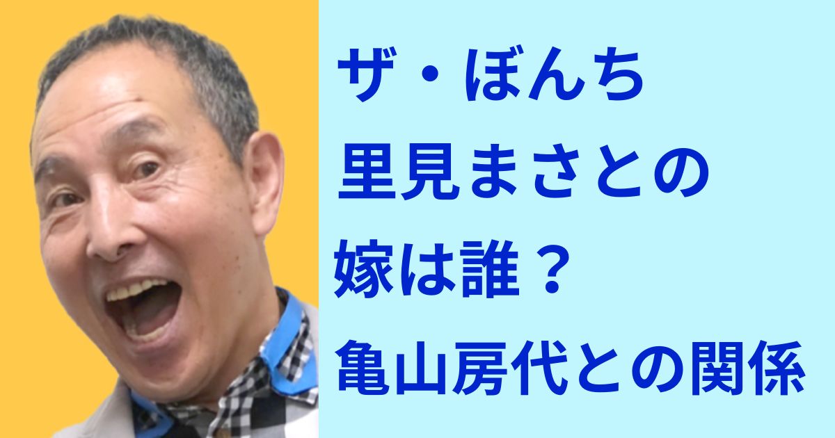 今回はザ・ぼんち里見まさとさんの嫁や亀山房代さんとの関係、結婚の真相について調査しました。